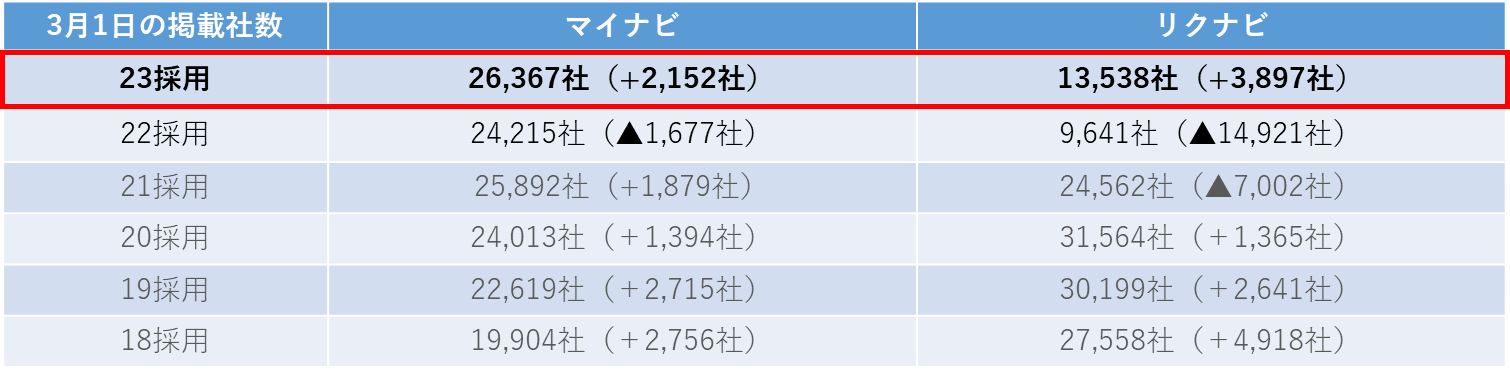 大手就職ナビサイトの掲載企業数が昨年度よりも増加していることを見ても、Withコロナ時代における新卒採用活動再開の動きが感じられます。