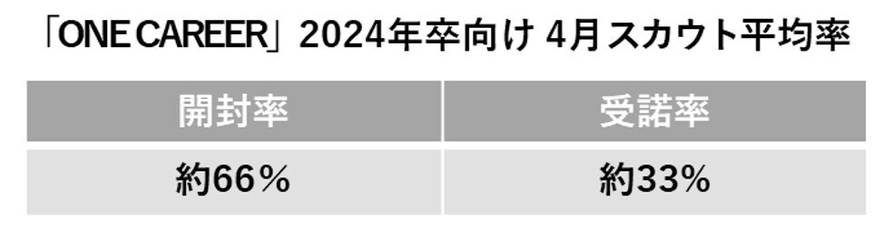 就活の口コミの書き込み・閲覧ができることで学生利用者数が非常に多い就活サイト「ONE CAREER」も、今年2月からスカウトサービスを開始しました。4月のスカウト反応率は良く、個人的には特に利用企業の少ない今がチャンスと見ています。