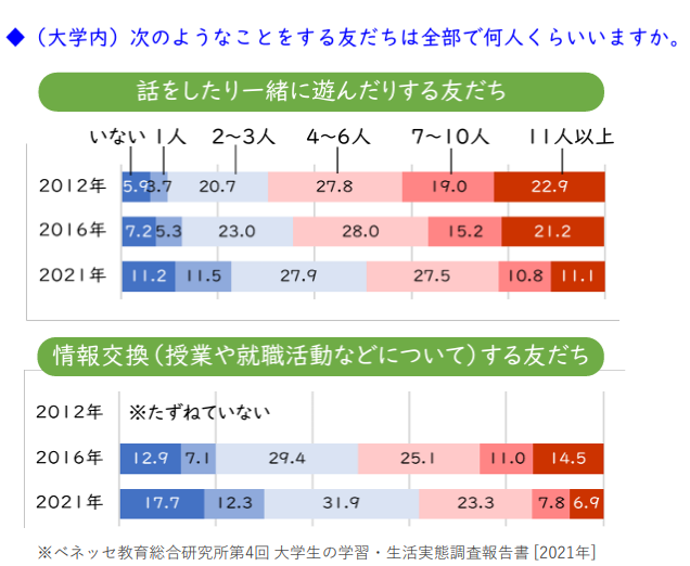 【処方箋例】 入学当初からコロナの影響を受けすべてがオンラインになった2024年卒学生は、大学内での縦・横の繋がりが希薄になっているため、親御さんに相談するケースがより増えることが想定されます(※図)。例年以上に個で動いている学生に対して、どのように企業認知を高めるのか。親御さんに対しても説得力のある情報提供をおこなうためにも、今の市場にあったツール制作は必要不可欠です。