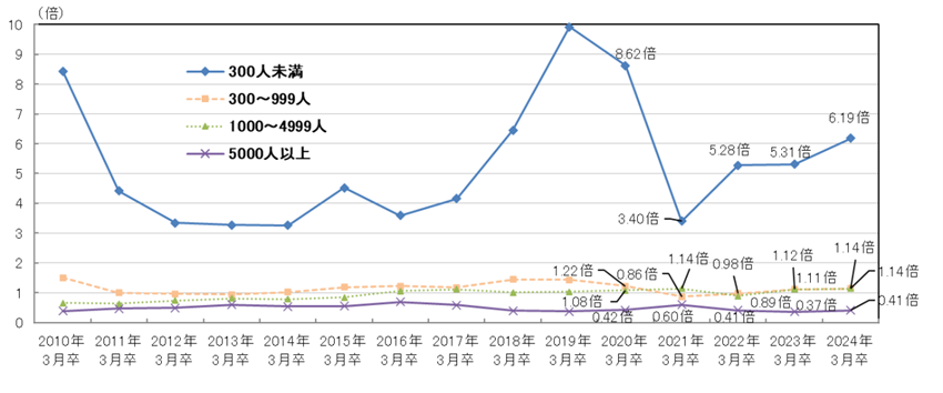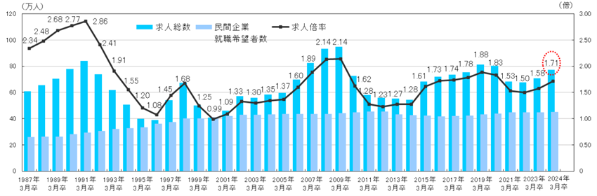 ※リクルートワークス研究所 第40回 ワークス大卒求人倍率調査(2024年卒)
