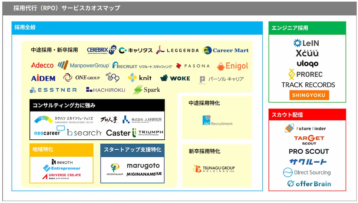 採用代行サービスの提供会社を整理したカオスマップを用意しました。