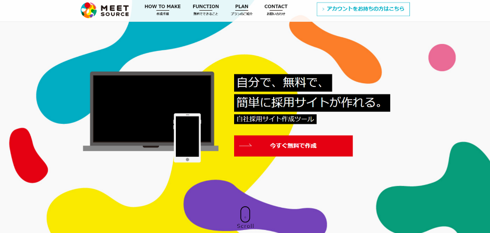▼無料で簡単に採用サイトが作れる。自社採用サイト作成ツール「MEET SOURCE(ミートソース)」