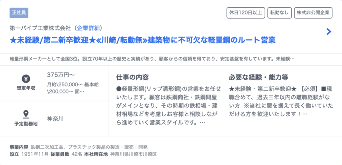 「第二新卒歓迎」「未経験者歓迎」での絞り込みも可能です。