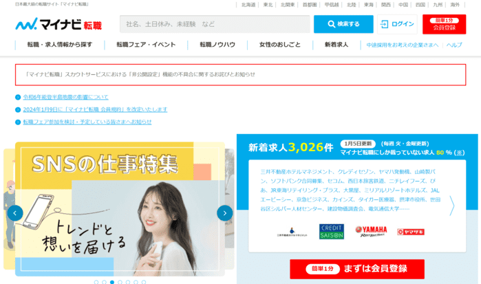 | 6位 | マイナビ転職 | 36,620件 | 20代や第二新卒など若手向けの求人が多く、はじめての転職、スキル・経験不足の若手におすすめ |
