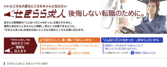 はたらいくには「せきらら求人」という、良いところ・大変なところをきちんと伝えてくれる求人があります。