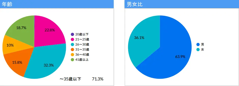 来場者のうち約7割が35歳以下、男女比はおよそ6:4の割合となっています。