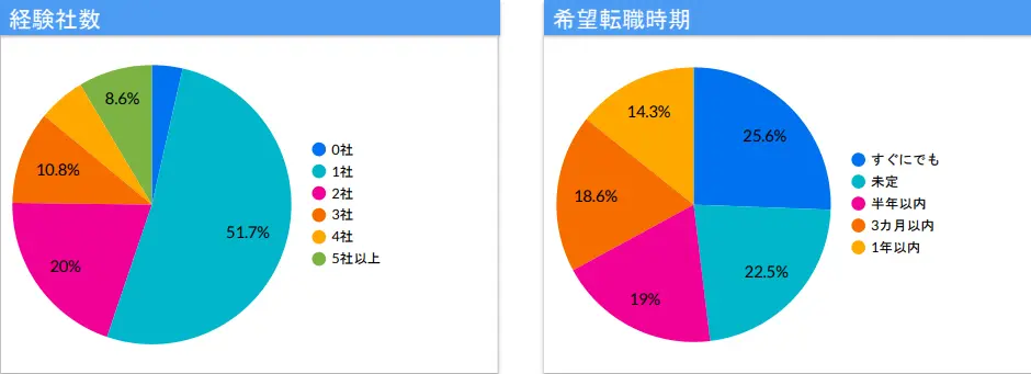 経験社数が1社以下の転職経験のない求職者が半数を超えており、
