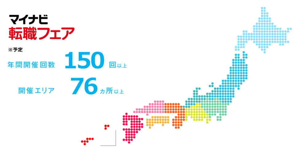 マイナビ転職フェアは全国76カ所以上で年間150回以上開催されており、
