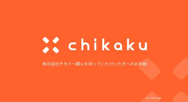 スマホで撮影した子供の成長を実家のテレビに送れる「まごチャンネル」を販売している株式会社チカクでは、企業ホームページと同じオレンジカラーを基調としたポップな採用ピッチ資料を公開しています。