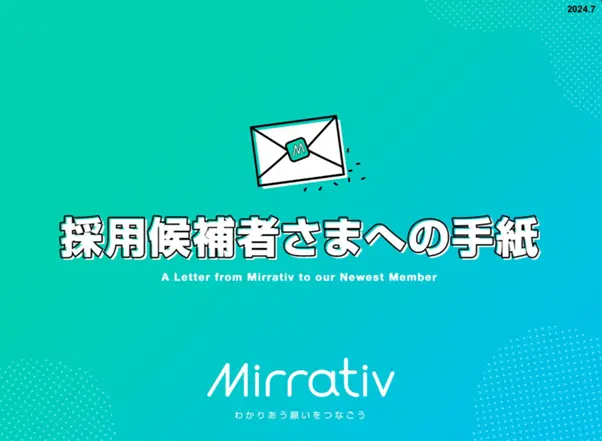 「採用候補者さまへの手紙」というタイトルも話題を呼びました。