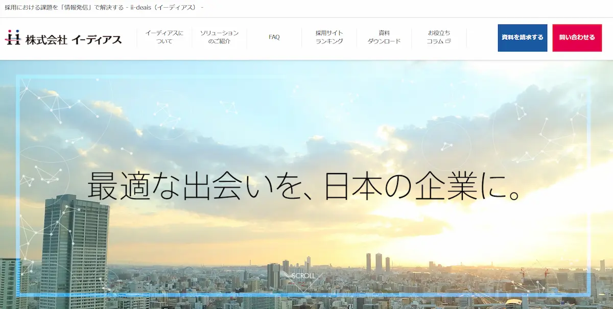 株式会社イーディアスは、新卒採用支援に特に注力しており、企業の採用課題を「情報発信」を通じて解決する点が特徴です。専任チームが伴走し、採用力向上に向けた戦略立案から実行までを包括的にサポートします。