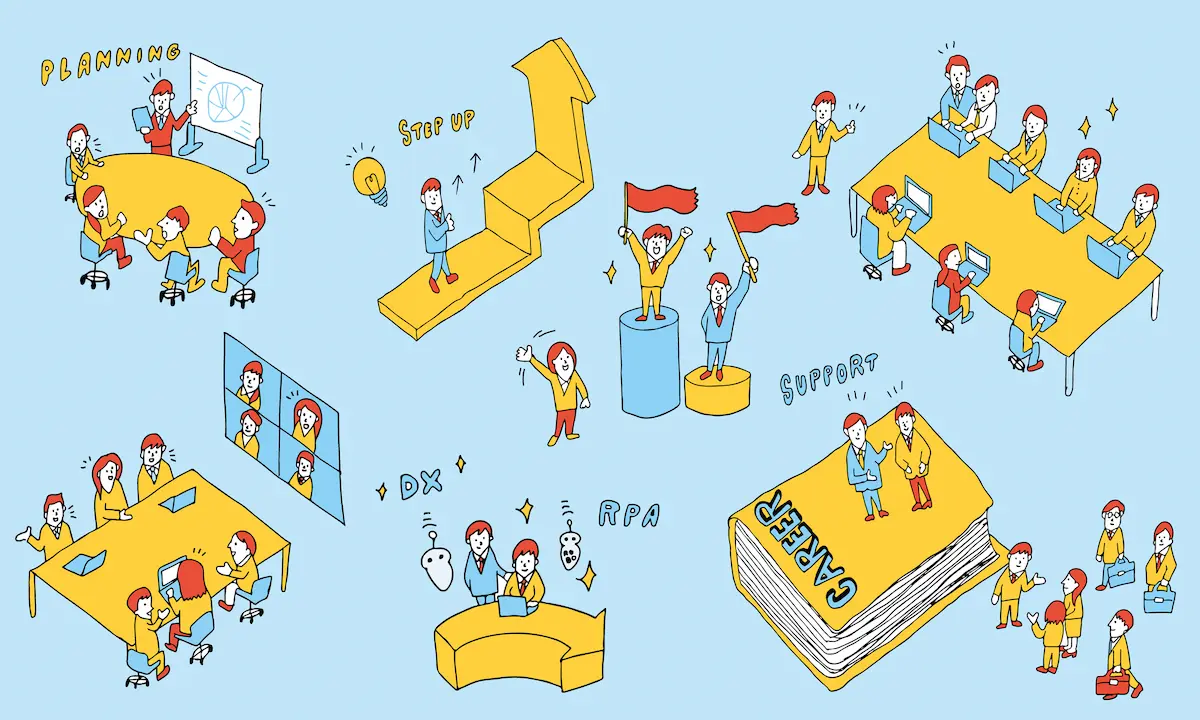 評価項目や評価基準は、担当者同士で話し合って決めます。