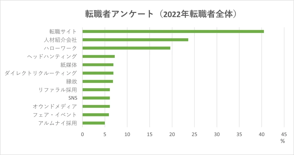 株式会社マイナビが調査した『転職動向調査2024年版』によると、2023年に転職活動に利用された求人媒体の割合は、転職サイトが全体の40.5%を占めており1位でした。