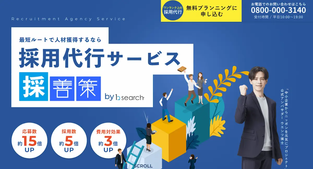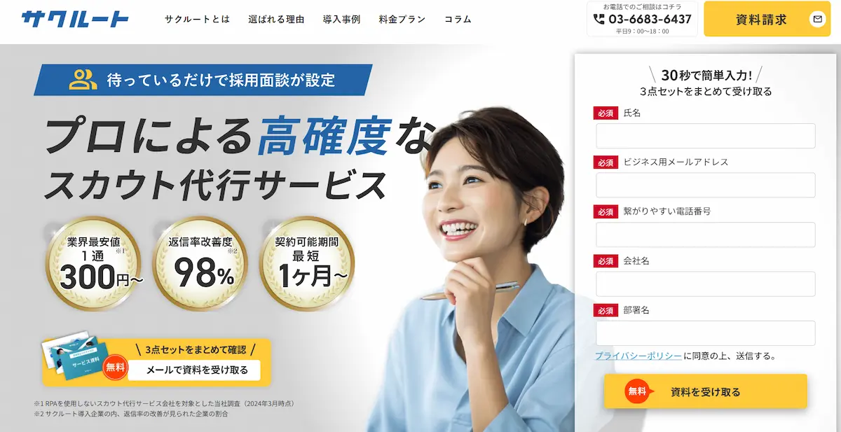 特に中途採用や新卒採用のスカウト代行や面接代行を強みとしており、企業ごとの課題に応じた柔軟なサポートを実施します。利用者からは柔軟で迅速な対応力を評価されています。