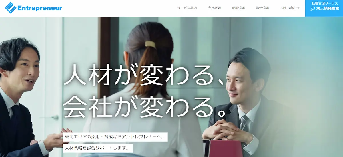 株式会社アントレプレナーは東海エリアの採用・育成支援を強みとしています。採用代行では、求人広告の選定から応募受付、説明会運営、書類選考までをサポートします。企業の採用ニーズに合わせたオーダーメイドプランを提案し、効率的な採用を実現します。