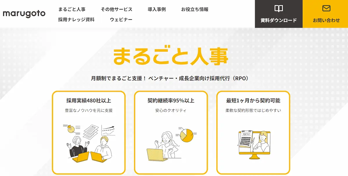 マルゴト株式会社の採用代行サービス「まるごと人事」は、特にベンチャーや成長企業向けに特化した包括的なサービス。採用チャネルの多様化に対応し、スカウト送信や媒体運用などのノウハウを活用して、採用活動の精度を向上させます。