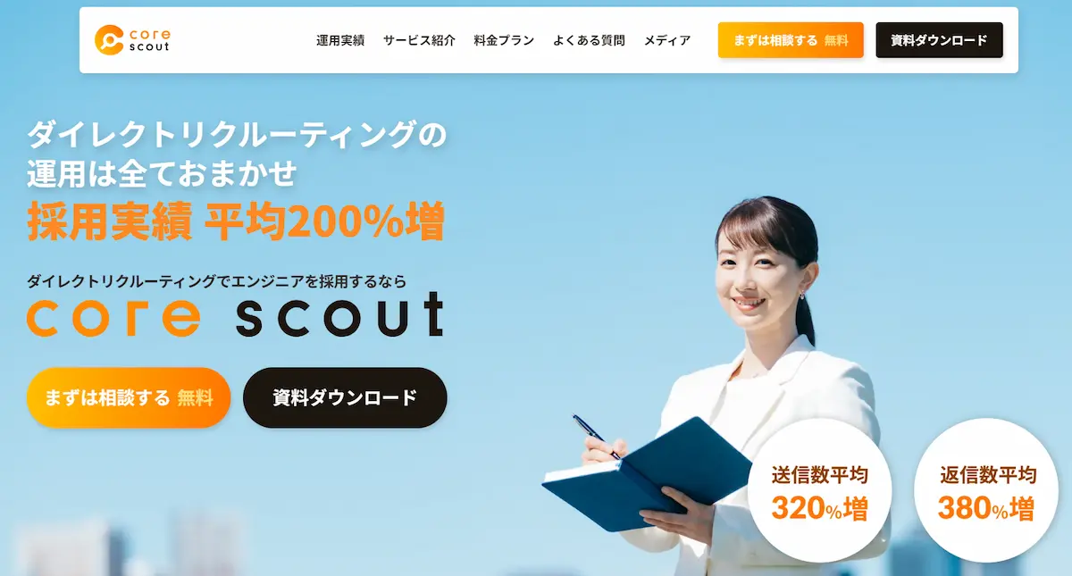 株式会社シンギョクの採用代行サービス「core scout」は、ダイレクトリクルーティングでエンジニアを採用したい企業向けのサービス。エンジニアやPM、CTOなどIT系職種の採用を得意としています。