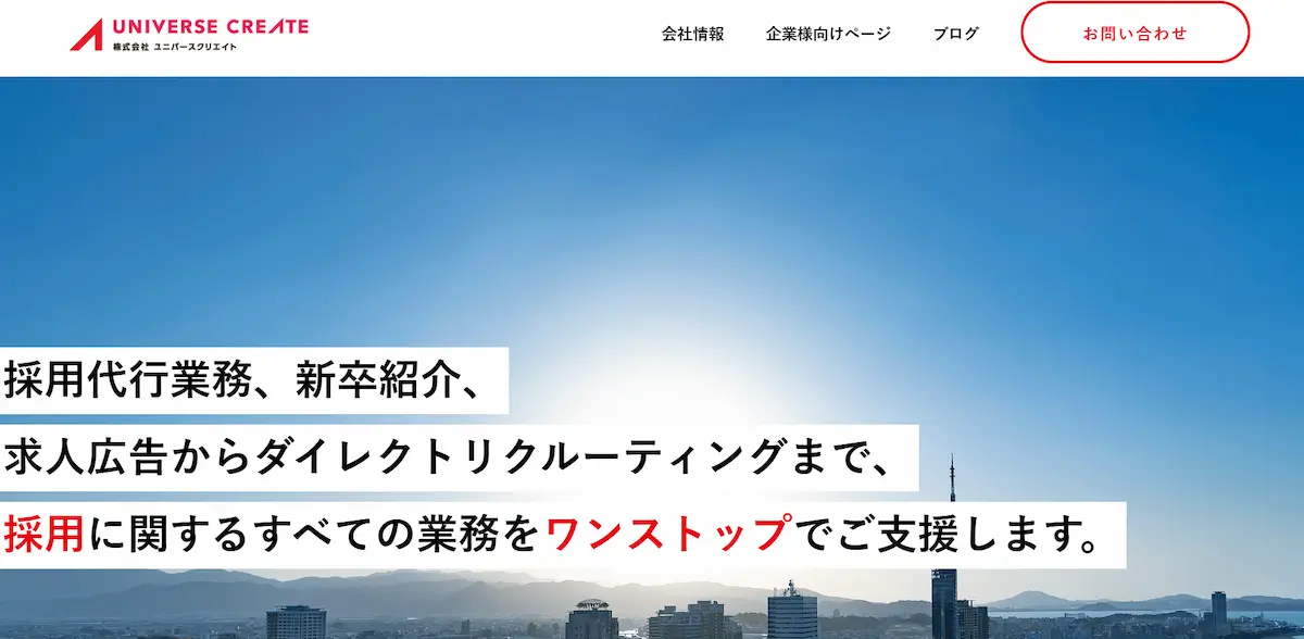株式会社ユニバースクリエイトは、福岡を拠点に九州地域での新卒採用・中途採用支援を強みとしています。