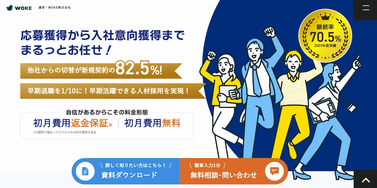 WOKE株式会社の採用代行は、独自ツールを活用したデータによる戦略立案を実施。提供しています。競合調査を通じて「勝てる」採用活動の設計を実施、最終交渉や入社意向の獲得まで支援可能です。