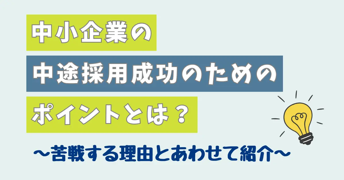 今回は、中小企業の中途採用が難しい理由や中途採用を成功させるポイント、成功事例を解説しました。