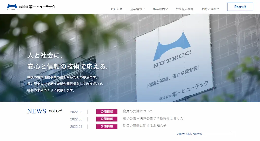第一ヒューテックは、歴史のあるゼネコンとして扱う建物は多岐にわたる。