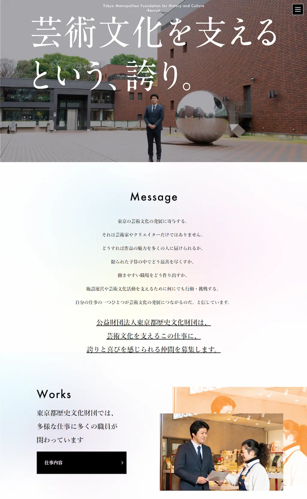 仕事の誇りや業務内容を伝える採用サイトを制作した。