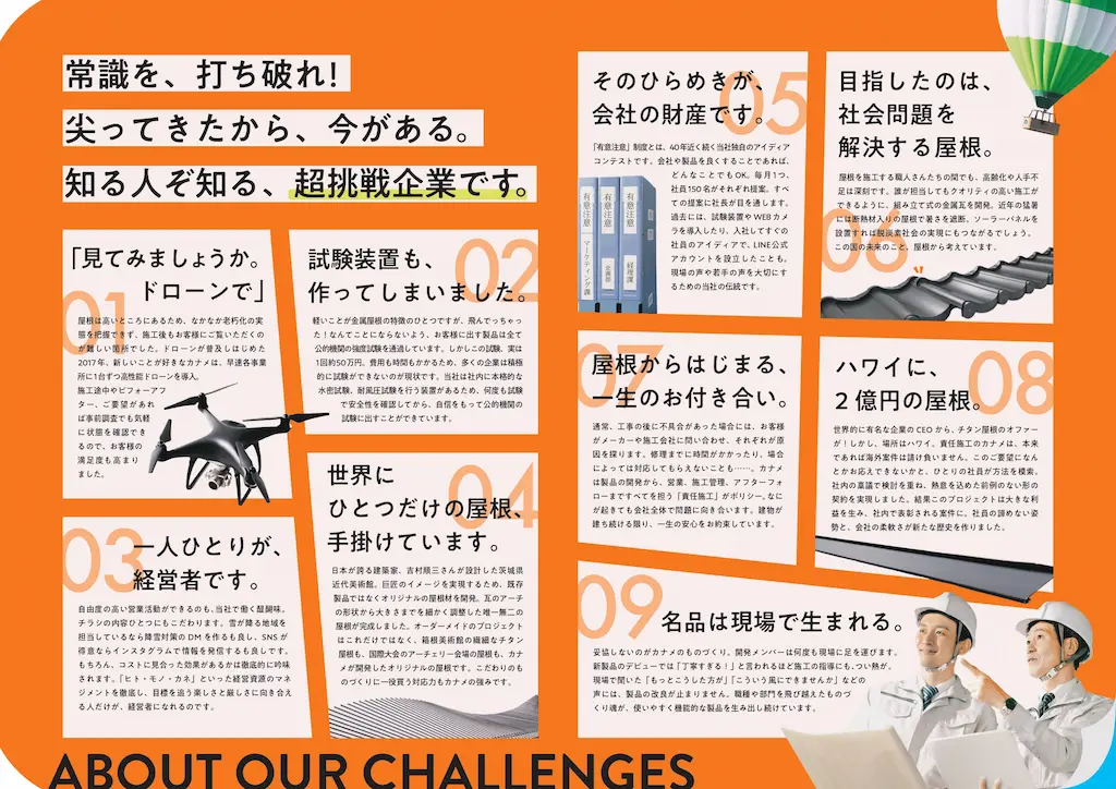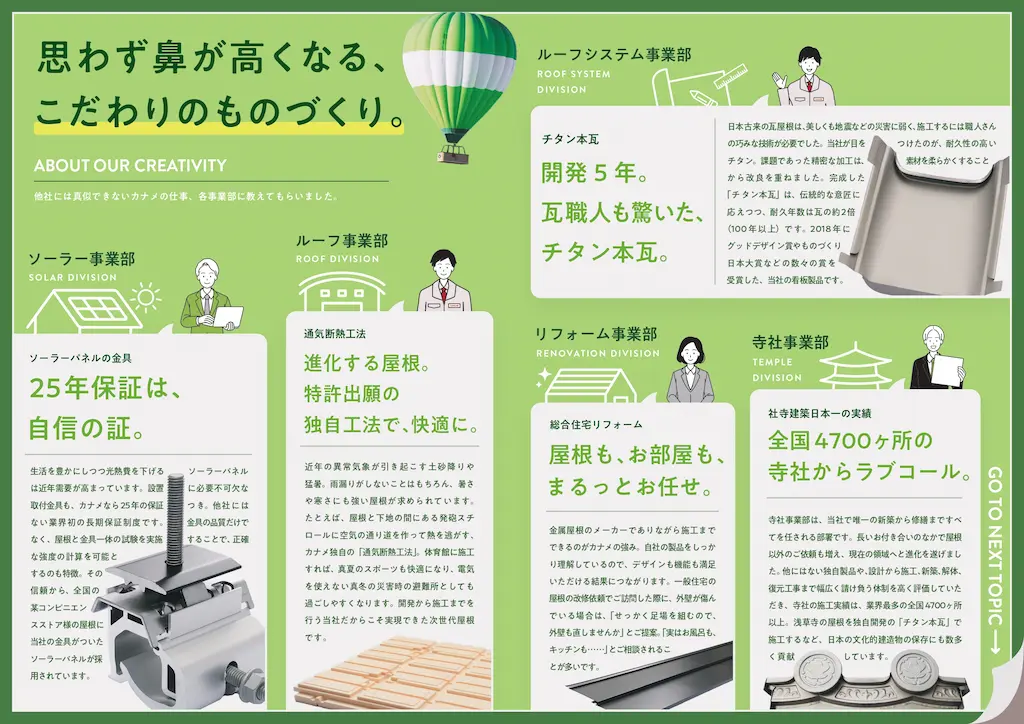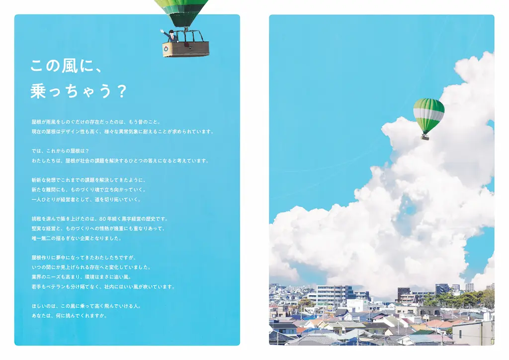 屋根に特化した事業内容から想像されるニッチなイメージを払拭するべく