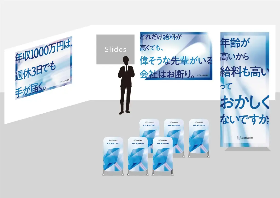 ”今どきな会社”というコンセプトを立ててブース装飾を作成。