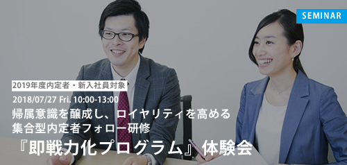これ以外にも、インターンシップの考案や、採用の広報手段の提案などを内定者フォロープログラムに組み込むことが、内定者の意識を社員目線まで上げ、同時に翌年の採用活動の準備もできるおすすめの方法です。