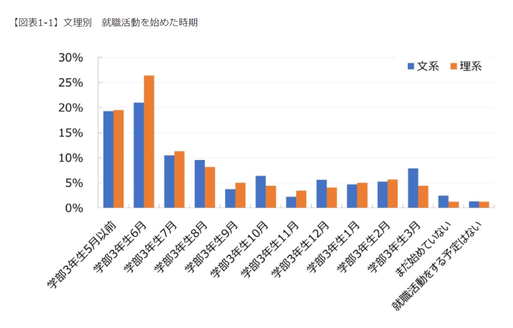 2023年卒学生のアンケートを見てみると、3年生の6月以前に動き出している学生が多く、就職活動のスケジュールが前倒しになってきていることがわかります。