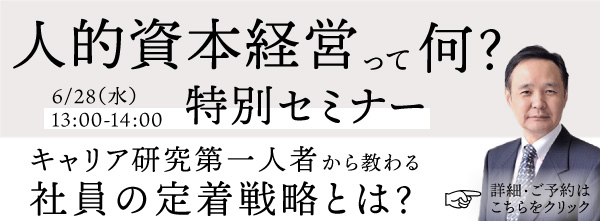 中小企業では、経営戦略の策定に積極的に参画しながら、人事業務を統括するCHRO(最高人事責任者)など、職位を設けていない企業も多く見られます。その場合、経営トップの意欲と行動が重要です。トップ自身が社員に働きかけ、自社の理念・ビジョンや社員が目指すべき姿を発信し、社員に理解してもらうことが、人的資本経営の推進につながります。 Pick up Seminar Articles |