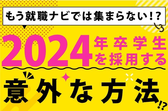 これから仲間として迎え入れる2024年度採用は、中途採用難による新卒採用市場への参入、採用を止めていた企業の活動再開などにより、超売り手市場の再来ともいわれています。企業から寄せられる声として最も多いのは「とにかく応募が集まらない」というものです。