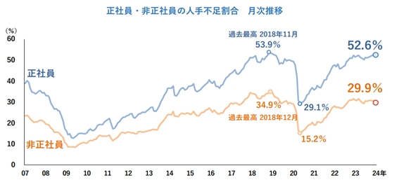 仕事の関係上、採用活動がうまくいかなくて困っているという話題であふれかえっているのです。 各社、採用活動に様々な工夫を施し、予算・スタッフを増強しているにも関わらず、人員が充足できているという話はほとんど聞きません。 少子化、労働人口の減少、売り手市場対応、選んでもらえる組織施策、離職率の上昇、採用活動の複雑化・長期化。頭を悩ませる状況が続いています。 ![]() 出典:人手不足に対する企業の動向調査(2024年1月) 株式会社帝国データバンク 採用活動のオンライン化により、応募者を自社のみに惹きつけて入社に導き、その後も長く活躍・定着してもらうことの難易度が上がっているのは間違いありません。 今回は、こういった問題を解消するヒントとして「仕事内容を分けてみる」というお話をしたいと思います。 仕事内容を分けるメリットはわかりづらいかもしれません。 「同じ職種だから、どこの企業も同じ仕事でしょ?」 「幅広く、様々な仕事に携わった方が社員の成長機会にもつながるのでは?」 という意見はごもっともです。 私が若手時代の営業の仕事といえば、アポイントを取り、見込み客をフォローし、商談でプレゼンをし、クロージングをかけて契約をとるのはもちろんのこと、 納品活動や、お客様のサポート、次の営業活動につなげるまでの全てを自分でおこなうことが当たり前でした。 現在は、問い合わせの獲得をマーケティングが、アポイントの取得はインサイドセールスがおこなってくれています。定期的な見込み客への連絡もサポートしてくれ、晴れて受注した後は、カスタマーサポートが納品活動を手伝ってくれています。 時代は変わったものだなぁと感じます。当時と比べると、とても効率的で、はっきり言うと楽になったのです。 仕事の役割を分けたことで、丁寧で正確な対応が可能になり、お客様にも喜んでいただける。よいことだらけです。 「自分は全てをやってきたし、これからも変わらずやるべきだ」という意見に対しても、様々な仕事を経験することから得られる成長についても、否定するつもりはありません。 しかし、時代の流れとして、仕事内容はどんどん分けられています。タクシーの配車アプリや、飲食業の注文タブレット、配膳ロボなどのテクノロジー施策は分かりやすい例だと思います。 仕事を分けていくことのメリットは2つあります。 1つめは、社員の教育や技能習得が早くなること。限定された役割と経験値が積み重なることで、戦力化が早まるのです。 もう1つは、企業と採用人材の仕事内容のすり合わせ精度が上がることです。やりたい仕事や、やりがいは多様化しており、応募者のニーズも細かくなりましたので、仕事内容が細分化されている方が、よりマッチングしやすくなるのです。 分けていくことで、わかりあえる度合いが上がる。このことは、採用だけでなく、既存社員の定着にも同じような効果があります。 仕事内容を分けていくという視点で、ぜひ自社の分析をおこなってみてください。 分けていくことで、気づきや、わかることがあり、採用活動や定着にも、必ずプラスのメリットが出てくるはずです。 Pick up Seminar Articles |