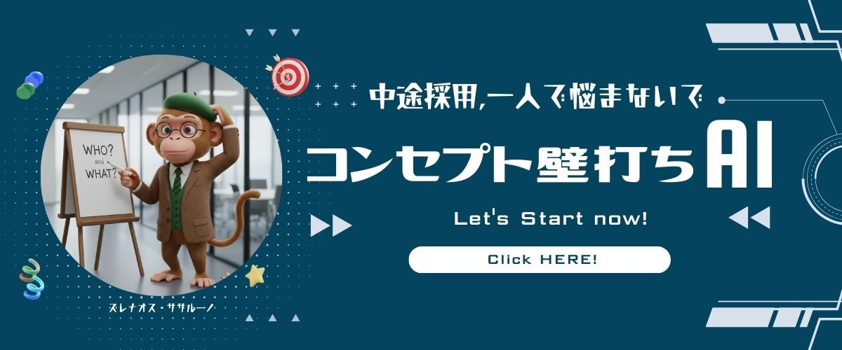 さて今回は、「キャリア採用のコンセプト壁打ちAI」をご案内します。こちらももちろん無料でご利用いただけます。(ChatGPTで作成しています。)