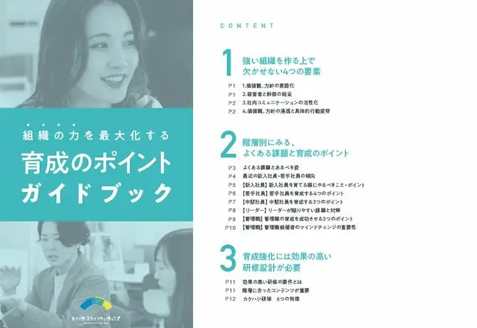 組織力を高めるために必要な要素や、効果の高い研修の要件も解説しています。
