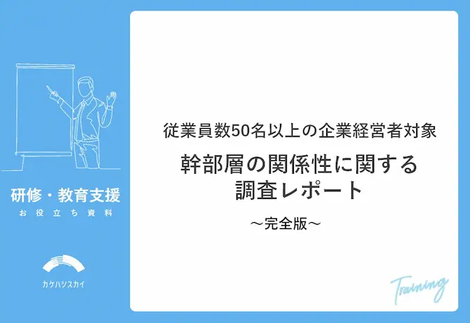 従業員数50名以上の企業の経営者および役員442名に対し、幹部同士の関係性についての調査を実施し、幹部同士の関係性のよい会社とそうでない会社の比較等の分析をおこないました。その結果、幹部同士の関係性が良好な企業ほど、業績評価がよい傾向があることが分かりました。ぜひこの機会にご活用ください。