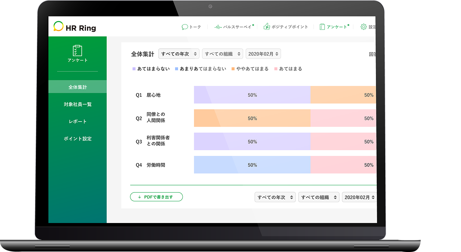 HR Ringでは大きく3つの機能を使い、社員のコミュニケーションを誘発、コンディションを見える化することで、心理的安全性の創出につなげます。