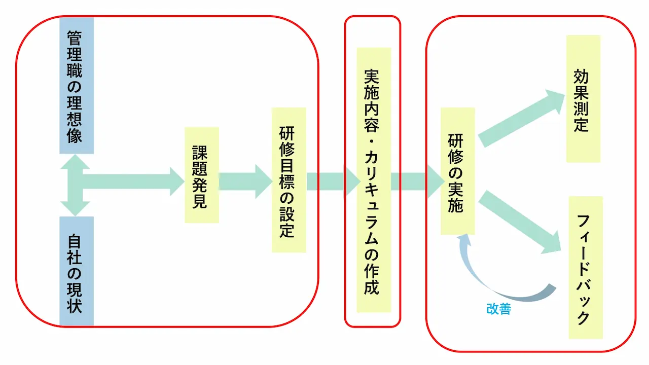 管理職がマネジメントについてきちんと理解し、実践につなげていくために、管理職研修という学びの機会を設けることが重要です。