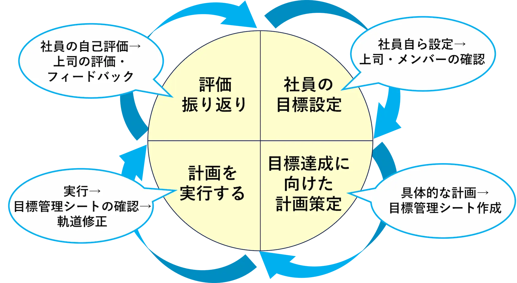目標到達までの目標の設定や管理を会社や上司ではなく、社員自らがおこなう特徴があります。