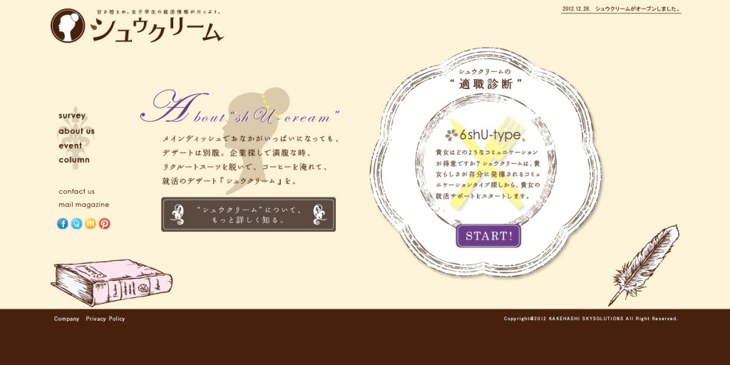 • [新サービス]女子就活生のための応援サイト『シュウクリーム』、はじめました。