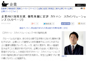2015年2月5日(木)の「フジサンケイビジネスアイ」で代表中川のインタビュー記事を掲載いただきました。