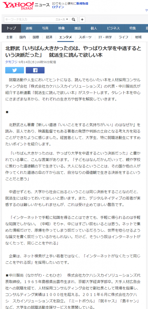 カケハシスカイ代表取締役社長の中川 智尚が、夕刊フジが運営するWEBメディア「ZAKZAK」で「就活生に読んで欲しい本」の連載を開始いたしました。