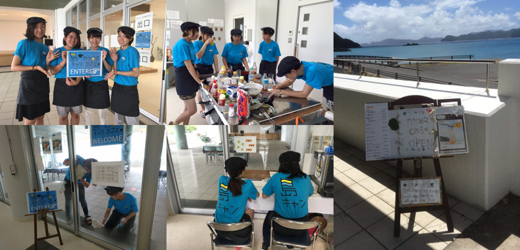 店舗スタッフとして、カフェでの就業で加計呂麻島の島おこしに貢献したいとの思いで島キャンに参加した女子大学生のインターンシップ生が、2ヶ月間計15名就業。より多くの方にカフェをご利用いただくために、島キャン生が店舗看板を制作するなど、ゼロからの店舗づくりに取り組みました。また、加計呂麻島へ奄美大島から来島する方への宣伝のため、作成した集客用チラシやリーフレットを、フェリーや奄美大島のホテルに設置いただく交渉なども島キャン生が発案し、実施いたしました。