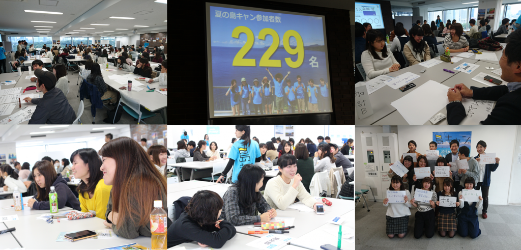 当日は、2016年夏の島キャン生229名のうち約100名が集結。島キャンで得たもの、島での学び、これからできる島への貢献など、インターンシップでの経験や成長、自身の進化を発表いたしました。