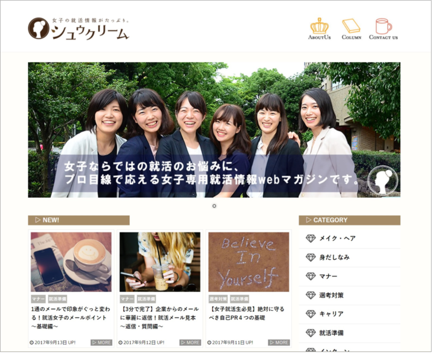 • [シュウクリーム]WEBサイトリニューアル!女子ならではの就活のお悩みに、プロ目線で応える女子専用就活情報サイトとしてコラム配信を開始いたします。