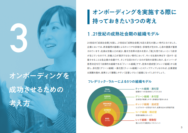 そもそもオンボーディングとは何か、オンボーディングをおこなわない組織におこりがちな課題など、はじめてオンボーディングに取り組む企業にもわかりやすい解説から、いまの施策を改善したい企業まで、今後の人材育成・組織活性化に向けて参考になる情報が満載です。