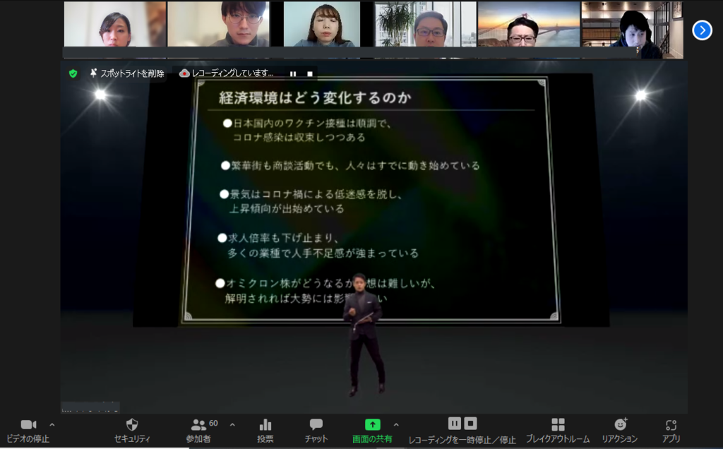 代表からの方針発表もスライドと代表が見やすく話が聞きやすいカメラワークで、