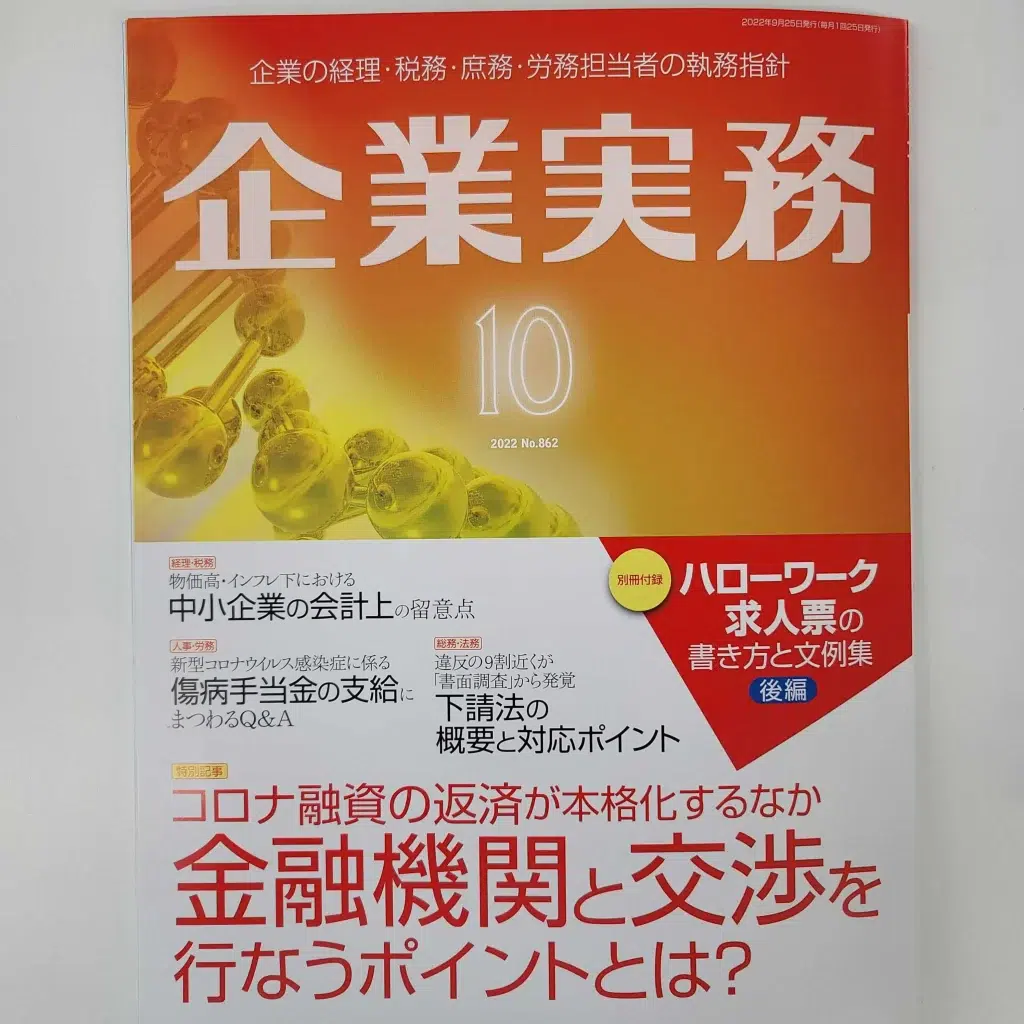 企業の経理・税務・庶務・労務担当者の執務指針として発刊されている「企業実務」の10月号に 内定者フォローに関する弊社の記事が掲載されましたのでお知らせいたします。
