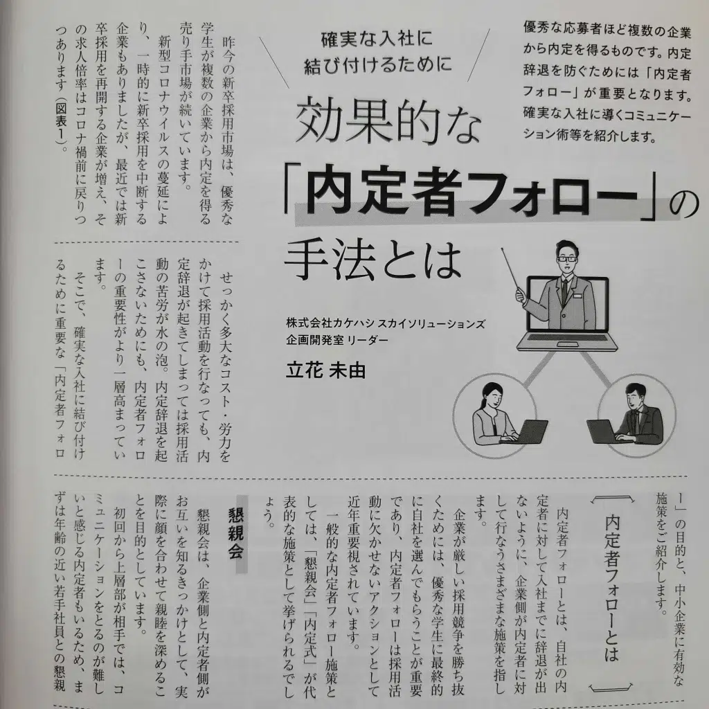 ▼2022年10月号掲載タイトル 確実な入社に結びつけるために 効果的な「内定者フォロー」の手法とは