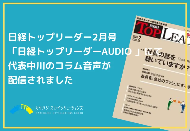 • 日経トップリーダー2月号「日経トップリーダーAUDIO 」にて代表中川のコラム音声が配信されました